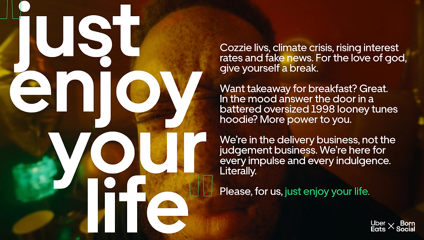 The campaign tapped into a universal tension (ordering that same dish three nights in a row, hiding from your delivery driver, fibbing about who the food is for). It resonated with audiences because it was funny, human, and rooted in everyday behaviour - the kind of work people see themselves in and want to talk about.​